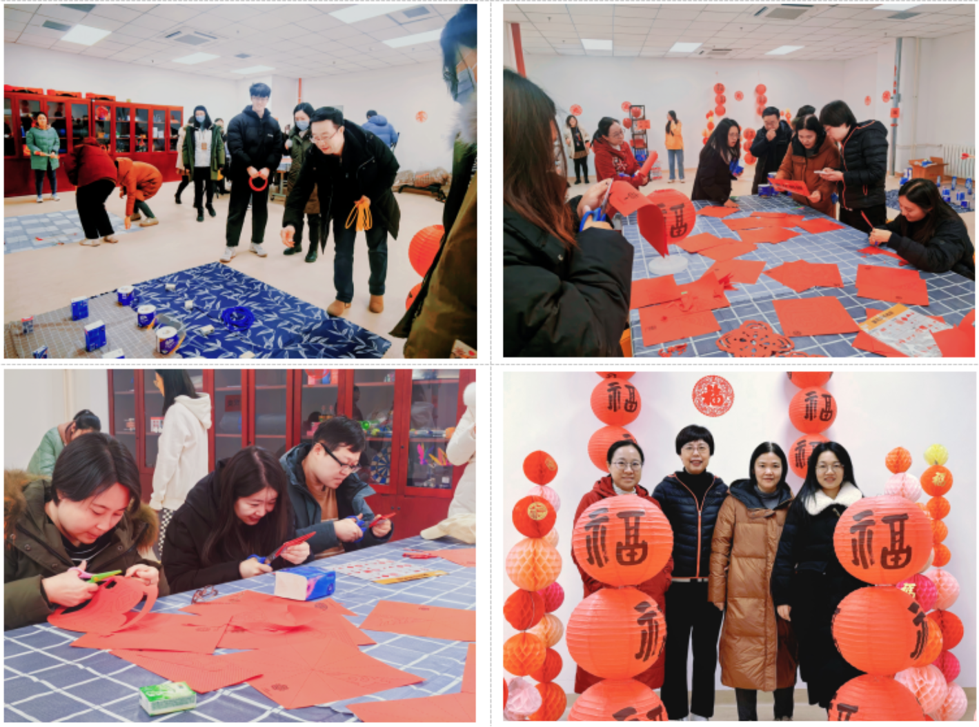 本次园游会活动共设置了4个项目,分别有新春灯笼墙拍照打卡、套圈、投壶、剪窗花。活动既具有趣味性,又具有挑战性,教职工在热闹的氛围中各显身手,释放压力,展现个人风采。