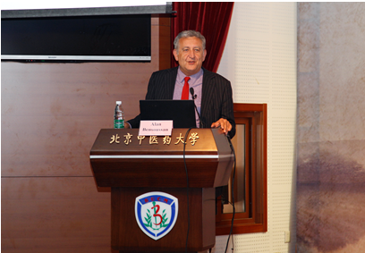 随后接过“对话”接力棒的是现任澳大利亚西悉尼大学国家替代医学研究所所长Alan Bensoussan教授,报告题目是《中草药——多靶点治疗方案》。他一直致力于在澳大利亚推广中医药,促进中医药国际化,主要研究方向是中药的多靶点治疗,通过研究中药方剂中的化合物发现最有生物活性的化合物,以及针对在血管性痴呆治疗的中药方剂中的化合物。