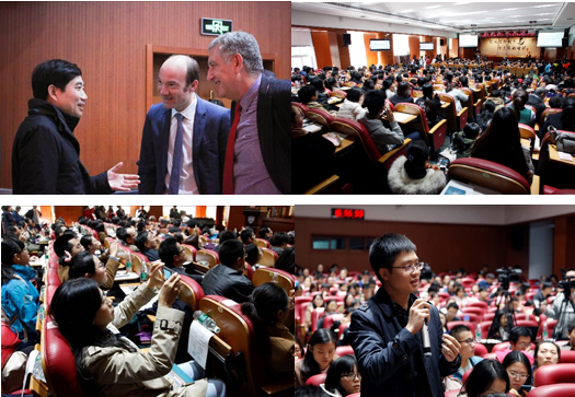 我校校友、来自国家纳米科学中心的韩东研究员作了题为《纳米生物医学成像表征与生命软物质》的专题报告,他从纳米成像表征的技术、生命软物质里面的自组织行为和限于空间的物质输送三个方面,为我们重新认识生命体提供了一个新的角度。作为一个从事血液病8年研究的临床医生,他觉得越接触前沿的科学越发现似曾相识,因为前沿科学正向我们祖先所指导的逻辑去发展,践行中国的表象逻辑,从而引领科学的理论,建立一个新的研究方向,甚至一个学科,再反哺中医,可能会达到意想不到的效果。