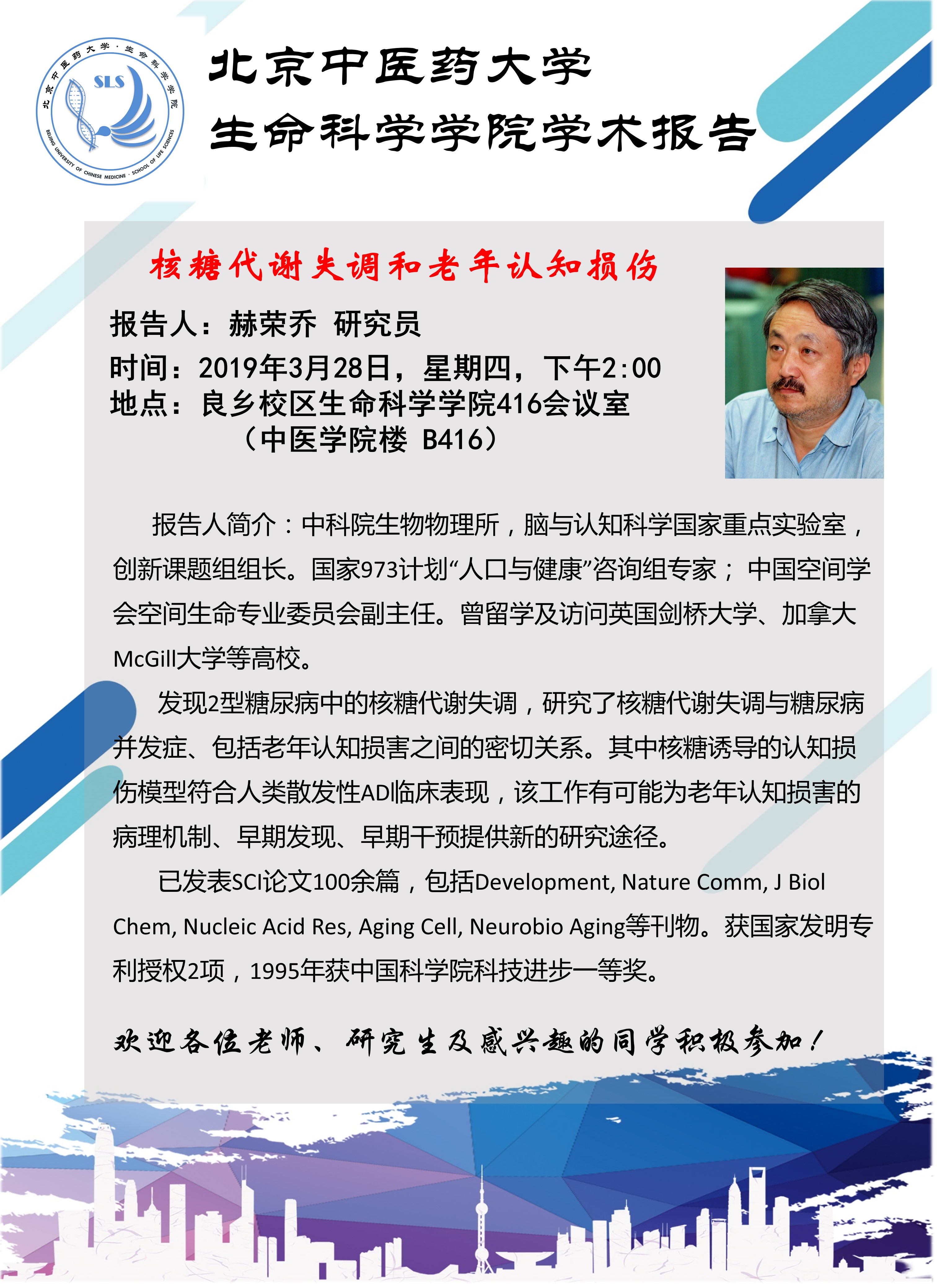 【学术报告】赫荣乔 研究员——核糖代谢失调和老年认知损伤