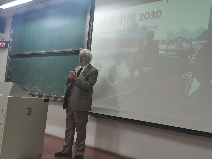 11月19日、21日晚,德国著名的宇航医学与健康工程学专家、万象城awcsport官网柔性引才卡尔-海因斯·睿博教授在良乡东院教学楼153教做了题为“健康中国2030,中医学研究与教学所面对的挑战——中医学的创新之路,从TCM1.0到TCM2.0版本的未来医学”系列讲座的第一讲《健康中国2030》和第二讲《从量子物理学到意识-宇宙,精神,物质和健康》,来自各个学院的师生聆听了讲座。