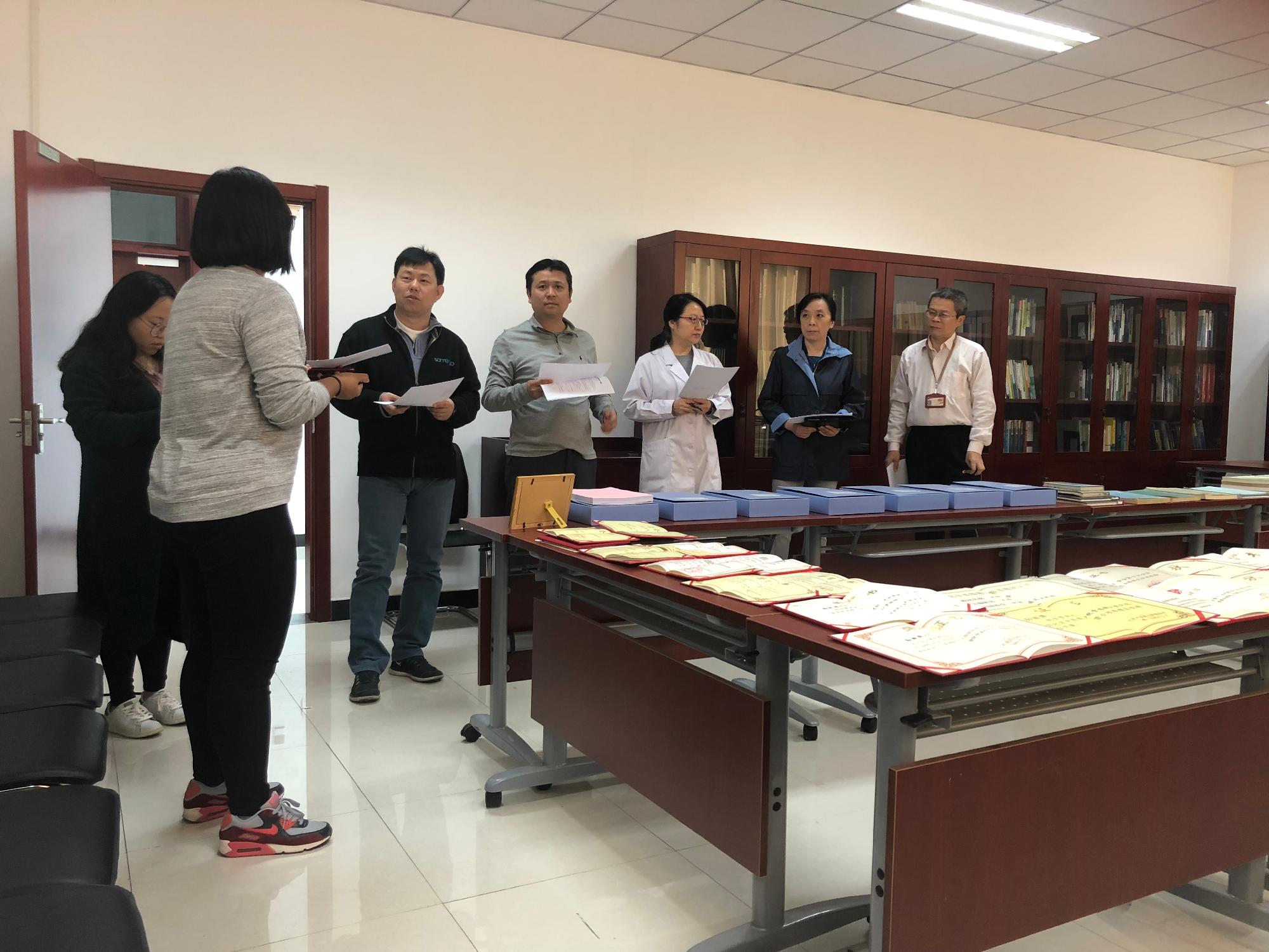 首先在副院长王建勋的主持下,先对我校教务处、教师发展中心发布的《标准化教研室建设基本要求》(草案)(京中教函)〔2018〕14号进行了解读,部分疑惑的问题进行了交流与讨论。然后分别走访了生物化学教研室、生物科学教研室、免疫学与微生物学教研室和生物制药教研室,对照54条标准进行了自查,面对突出问题商讨解决办法。
