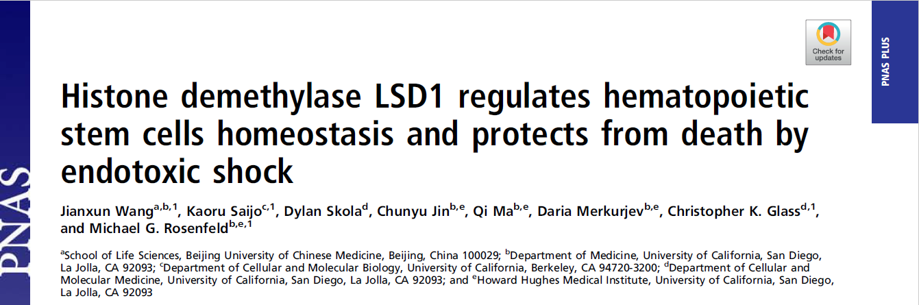 2017年12月20日,以我院特聘教授王建勋教授为通讯作者,万象城awcsport官网为第一完成单位,题为“Histone demethylase LSD1 regulates hematopoietic stem cells homeostasis and protects from death by endotoxin shock”一文,发表于四大名刊之一的《美国科学院院报》(PNAS)。