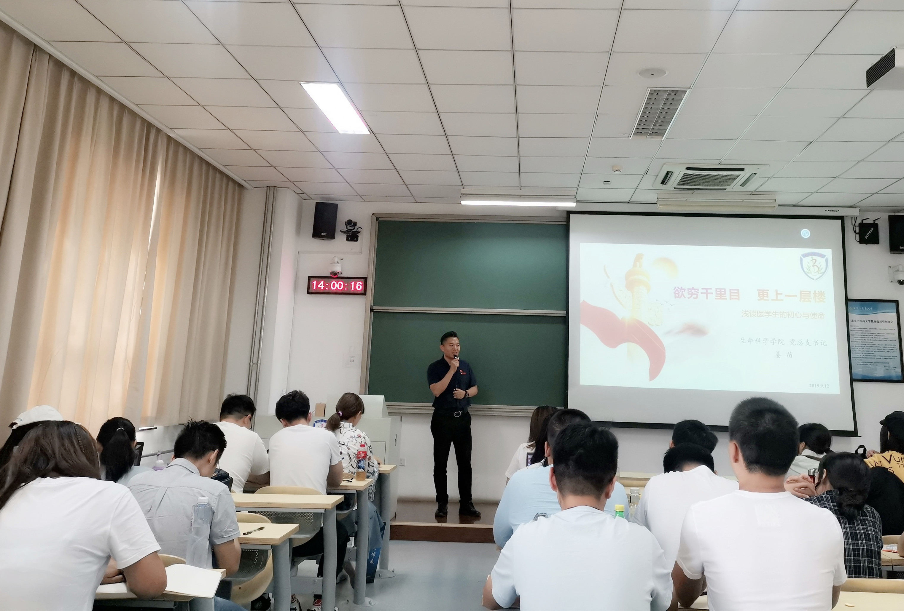 2019年9月12日,在良乡校区162教室,万象城awcsport官网新生入学教育系列活动之“新生第一次党课”顺利举办。学院党总支书记姜苗以“《欲穷千里目,更上一层楼》——浅谈医学生的初心与使命”为题,结合自己的学习及工作经历,给新生们上了一堂生动的党课。