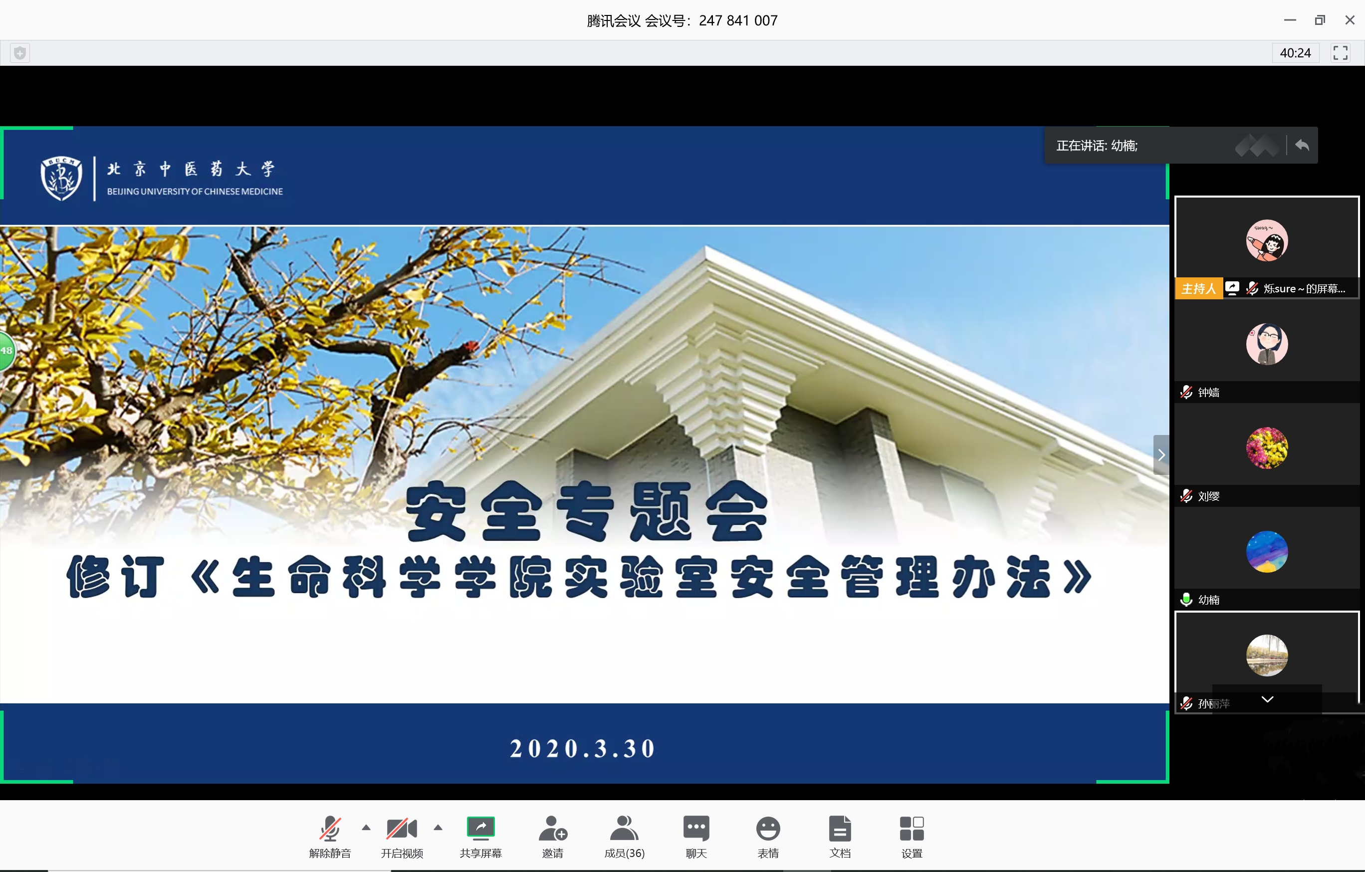 在学院党政领导班子决策部署下,为进一步加强实验室安全管理,营造良好的教学、科研环境,切实保障师生安全,3月30日上午,万象城awcsport官网通过线上会议的形式召开了安全工作专题会议。校实验室管理办公室潘彦舒主任、詹来明老师应邀参加本次会议,参加会议的还有学院科研、学科、学工分管领导及各支部书记、教研室主任、教师代表、各实验室安全负责人。会议由陈幼楠副院长主持。