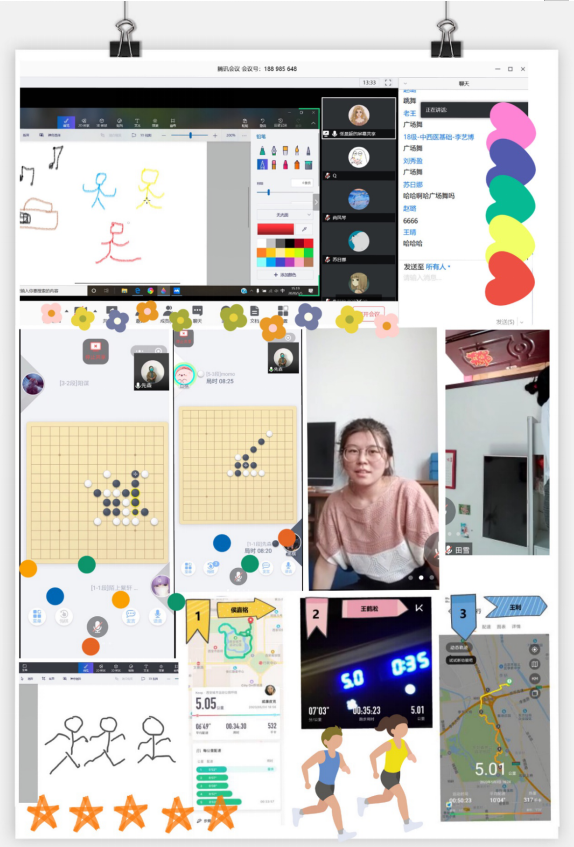 比赛经过周密的前期准备,利用线上直播的形式,分四个时段面向全院师生开展,整个活动过程井然有序,师生活力满满,积极参与了“你画我猜”、“对战五子棋”、“平板支撑比赛”,、及 “线上马拉松”活动。 在“你画我猜”活动中,画手同学们进行投屏作画,有不少“灵魂画手”的出现引得大家捧腹大笑,在这过程中大家纷纷抢答,热闹非凡;“对战五子棋”比赛采取了分组对战淘汰制,经过投屏大家观看了火药味十足的半决赛和决赛,最终经过层层对决,冠军棋手脱颖而出;师生们通过视频直播的形式参加了“平板支撑比赛”,随着主持人一声令下选手们开始了比赛,在姿势标准的前提下,每个人竞相展现自己的实力,咬牙坚持到最后一刻。在这样特殊的比赛形式中,观众同学们纷纷用打字的方式为大家加油喝彩。