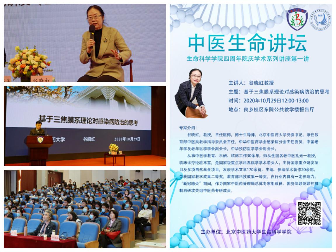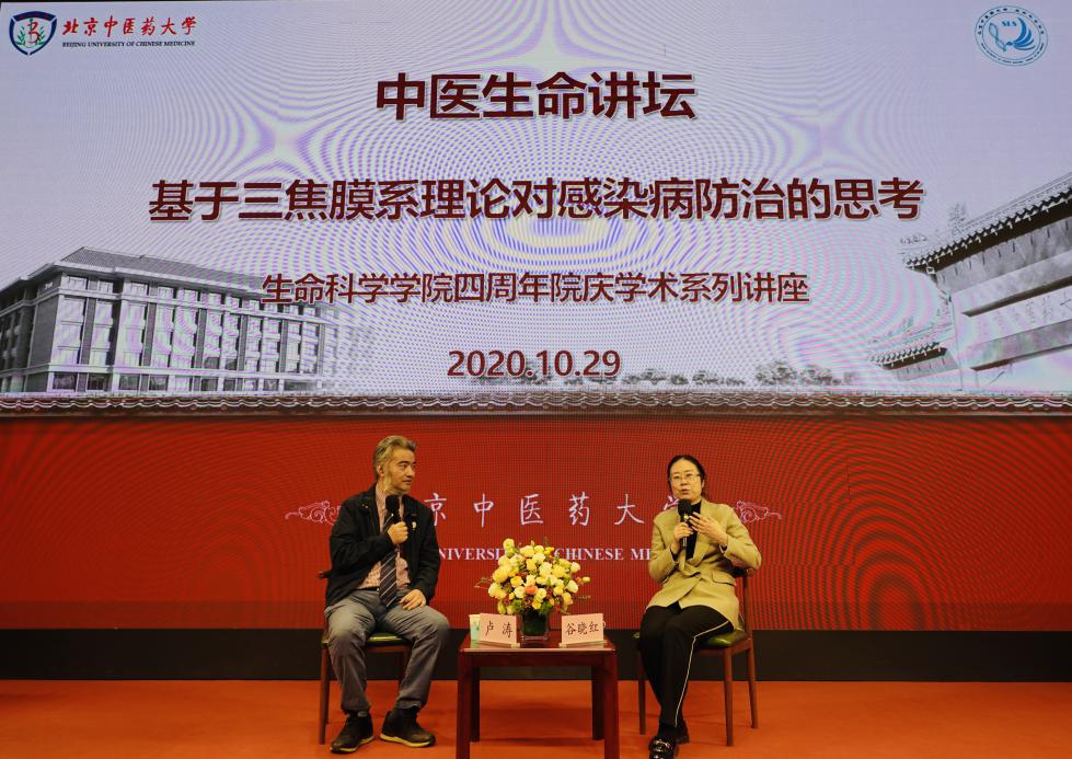 2020年10月29日,万象城awcsport官网顺利举办了四周年院庆系列学术活动—中医生命讲坛,本次讲坛邀请我校党委书记谷晓红教授进行主题演讲,我院卢涛副院长作为对话嘉宾。讲坛全程围绕《基于三焦膜系理论对感染病防治的思考》进行了深度交流。学院党总支书记李天罡、副院长王建勋、陈幼楠及学院师生代表200余人参加活动,活动由王建勋副院长主持。