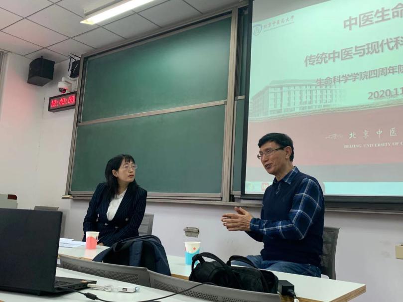 随后,张晓晴教授上台与洪教授围绕主题进行了一场学术问答讨论。张教授就怎样建设北中医的中医数学学科体系等问题向洪教授请教。洪教授表示:中医描述用语言描述,语言的描述提供了一个数学的平台,有些需要建立概念模型,从症状到状态的辨识是可以用数学描述和计算的,从状态的角度表述中医原理,在北中医搭建状态中医学的理论是一个重要的问题,这个问题不在学术而是一个中医传播的基础。对中医问题理解是能不能用数学描述的基础,只有采集足够多的信息,对于状态的估计才能足够准确,做中医现代化需要对中医原理做出深刻理解。