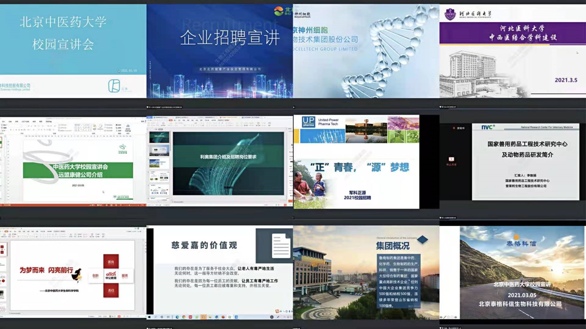 活动面向全校学生开展,采用线上、线下相结合的模式,以充分满足在校与未返校学生的需要。此次线上招聘暨宣讲会参与企业21家,涉及高等院校、医疗机构、生物医药、信息技术、大健康产业、教育培训、医药相关建筑安装等多个行业。