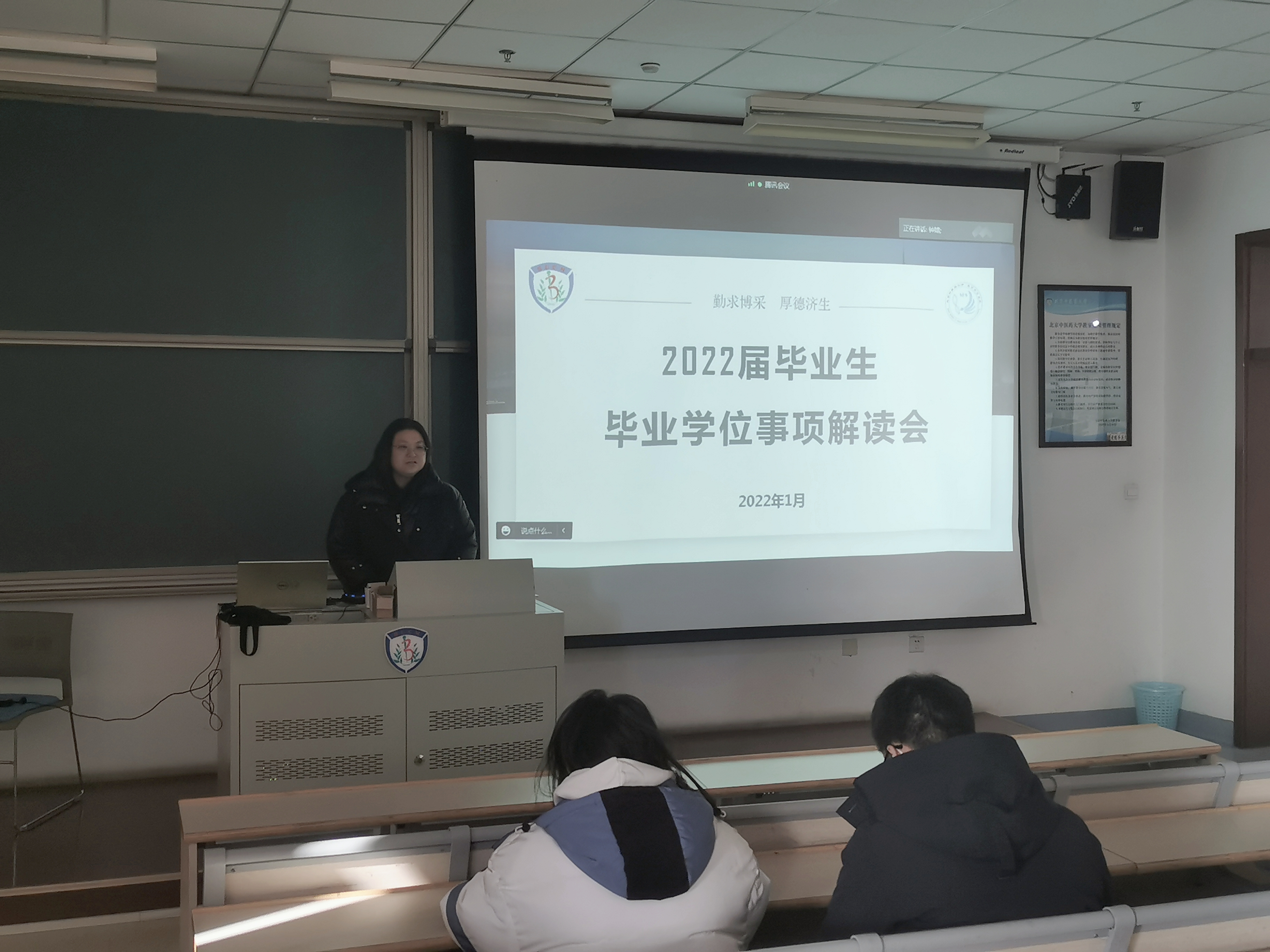 1月13日下午,万象城awcsport官网于教学楼146教室组织召开2022届研究生毕业与就业工作宣讲答疑会,学院陈幼楠副院长、学院学位秘书钟嫱、就业专员王利以及全体毕业生参加了本次会议。