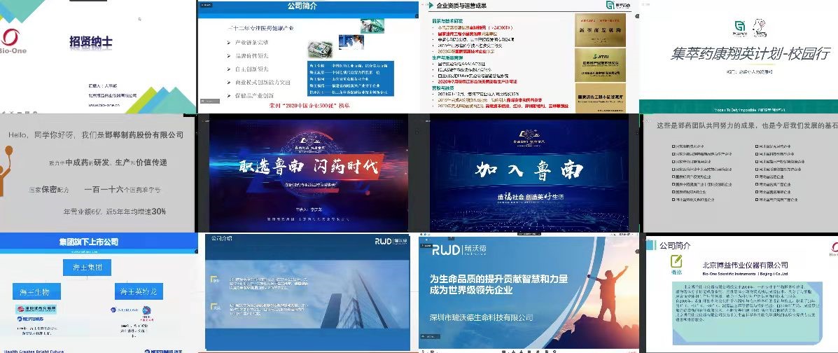 王利老师首先介绍了2022届毕业生基本情况,并对各参会单位进行了简要介绍。随后参会单位逐一进行了线上宣讲,各单位从基本情况、招聘计划、岗位职责、薪资待遇、职业发展等多方面进针对本年度招聘签方案行了详细解读,为同学们进一步认识职业、明确求职意向、精准定位求职岗位、实现任职匹配起到了积极推动作用。