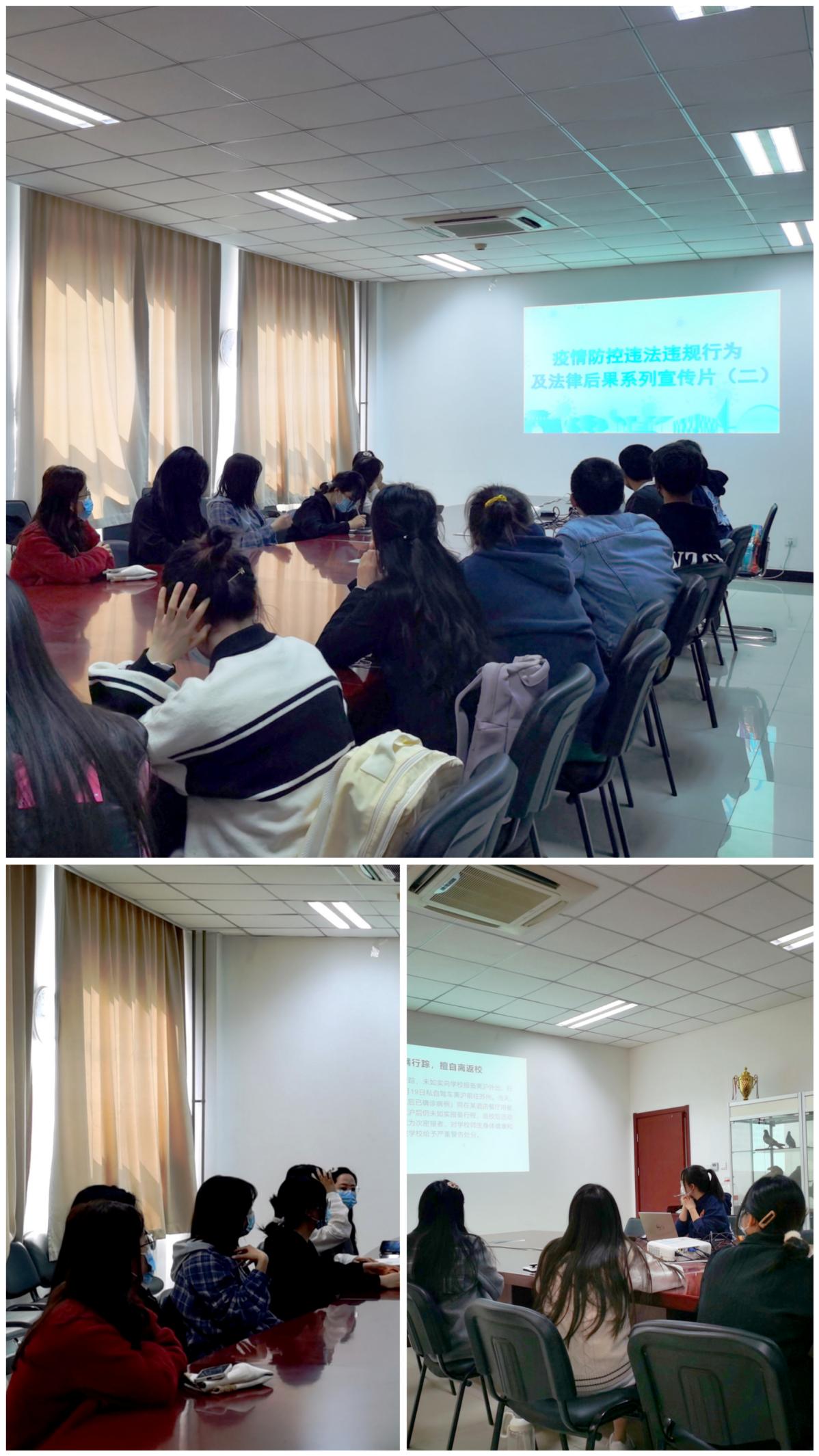 通过观看疫情防控相关法律法规宣传视频及高校典型警示案例视频,同学们从更高的站位,进一步了解了疫情防控相关违法违规行为及可能产生的严重后果,充分意识到了疫情防控风险点,进一步提升了防控意识,特别是高校的典型警示案例给同学们敲响了警钟。