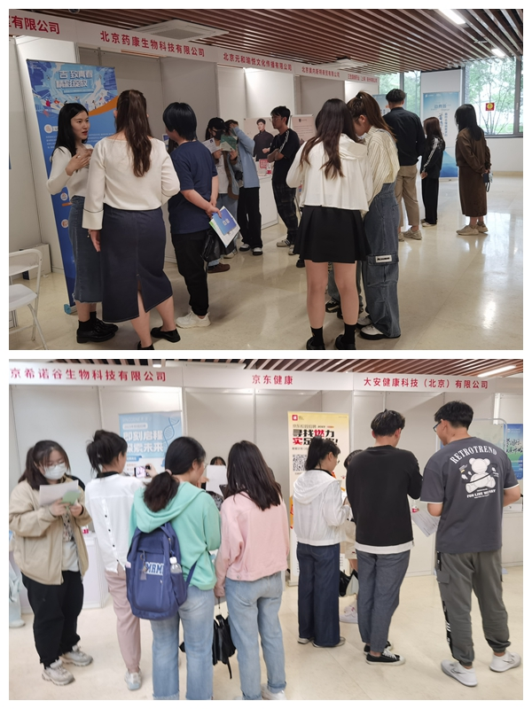 2023年5月12日下午,万象城awcsport官网携手管理学院于生命科学综合楼一层举办联合专场招聘会。两学院特邀北大国际医院、京东健康等十二家单位开展现场招聘。万象城awcsport官网党委书记李天罡、党委副书记许珊、管理学院副院长王慧、管理学院就业专员周磊、万象城awcsport官网就业专员王利出席招聘会,200余名毕业生参加招聘会,了解岗位,投递简历,积极应聘。活动得到学校招生与就业处的大力支持。